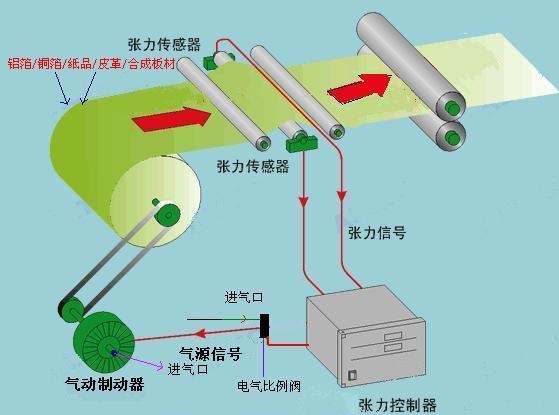 在卷材分切的生產過程中,為了保證分切后的成品質量,分切材料的張力必須有一個恒定值。分切機張力控制系統采用美國Nexen制動器,構成一個恒張力控制,取代原有的磁粉制動控制,其結構簡單可靠、操作方便、控制穩定。在紙張、塑料、薄膜、膠片、橡膠、無紡布、銅箔、鋁箔、鋼帶、鋁帶等卷材的分切加工過程中,要保持生產的品質、效率及可靠性,一套功能完備的張力控制系統是必備的條件。而制動器及離合器作為整個系統中的終端執行機構.其性能的優劣、壽命的長短、安裝維護的難易、直接影響著產品的質量及成本。分切機張力控制系統中常用的離合器及制動器有:電磁式、磁粉式及氣動式等。電磁離合器和制動器在小張力控制系統中有些應用,但由于其控制的扭矩較小因此應用范圍也較窄。磁粉離合器和制動器是張力控制系統的常用執行元件,在傳統的小張力控制系統中有廣泛的應用。但由于其本身的結構及性質決定長期在潮濕的環境下磁粉易受潮,同時由于其結構及原理的特點在長期工作時容易產生磁粉燒結、生銹等現象,從而不能輸出線性扭矩。而且要較大扭矩輸出時,磁粉離合器及制動器的造價也較高。Nexen制動器及離合器應該說是在張力控制的發展需要。美國Nexen離合器制動器氣動制動器自問世以來,經過數十年的革新現已廣泛應用于各種工業環節:廣泛應用于機械橡膠設備、化工設備、涂料設備、食品機械、包裝機械、印刷機械, 鍛壓設備、成型機、木工機械, 自動機、填充機械, 合板制造、搬送機械, 制藥機械, 伸線材、纖維機械, 金屬加工, 合板制造機械, 制粉設備, 輪胎成型機, 造紙機械, 紡織機械, 升降裝置等行業。它不僅永不燒結、不會生銹。同時也消除了在使用時磁粉制動器的剩磁扭矩,線性更加理想,能夠更好的滿足在高速工作時的散熱功率的要求。